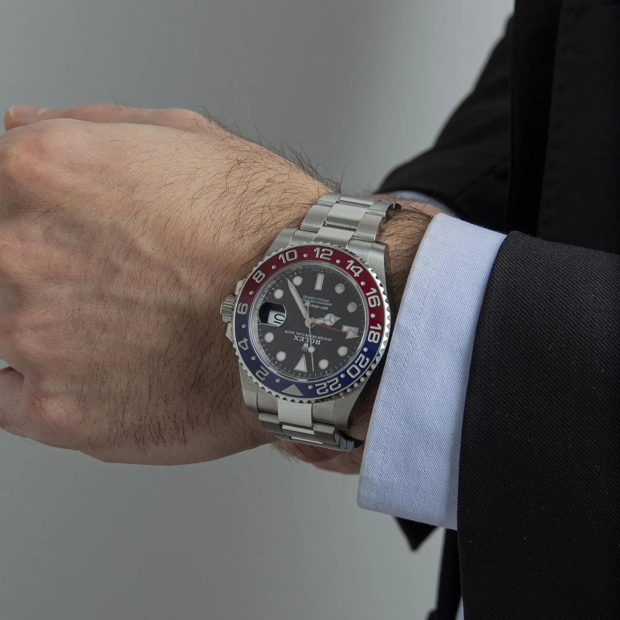 Rolex Gmt Master II ref. 126710BLRO euro 19000 Orologio Rolex Acciaio Gmt Master II con quadrante nero lunetta ceramica blu e rossa bracciale a Oyster misura cassa 40 mai indossato con scatola e garanzia dicembre 2024.