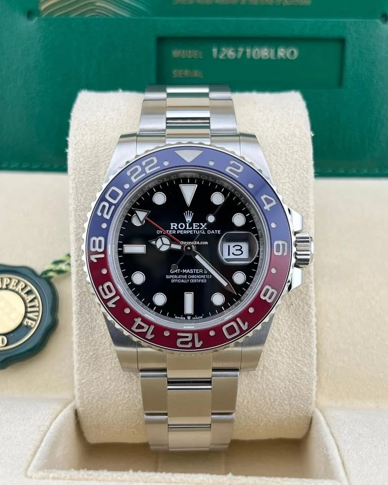 Rolex Gmt Master II ref. 126710BLRO euro 19000 Orologio Rolex Acciaio Gmt Master II con quadrante nero lunetta ceramica blu e rossa bracciale a Oyster misura cassa 40 mai indossato con scatola e garanzia dicembre 2024.